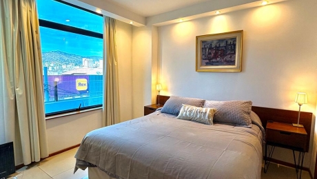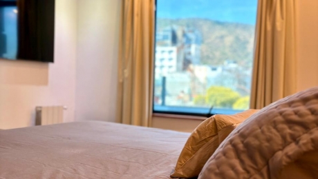 Departamento de un dormitorio Cama matrimonial o dos individuales y una cama con un carro debajo (marinera) El valor publicado es hasta dos personas.