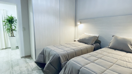 • Dormitorio con sommier matrimonial, se pueden separar quedando dos sommier individuales. A/A