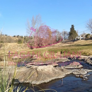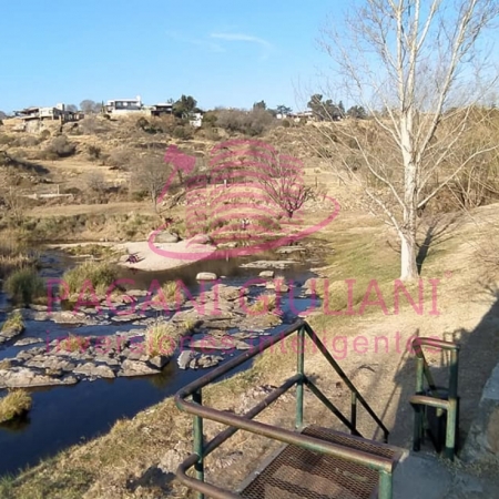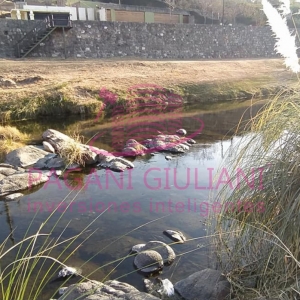 El contra-frente de los terrenos linda con el Rio Los chorrillos y la calle Sanzio donde el rio a pocos metros hace una gran curva y se forma una bellísima playa de arena